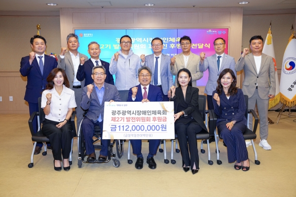 광주시장애인체육회 제2기 발전위원회는 장애인체육의 경쟁력 강화를 위해 구성된 민간 후원 조직으로 지역 기업과 일반 후원인 100명이 자발적으로 100만원씩 후원금을 모아 총 1억1200만원을 조성, 이날 후원금을 전달했다.