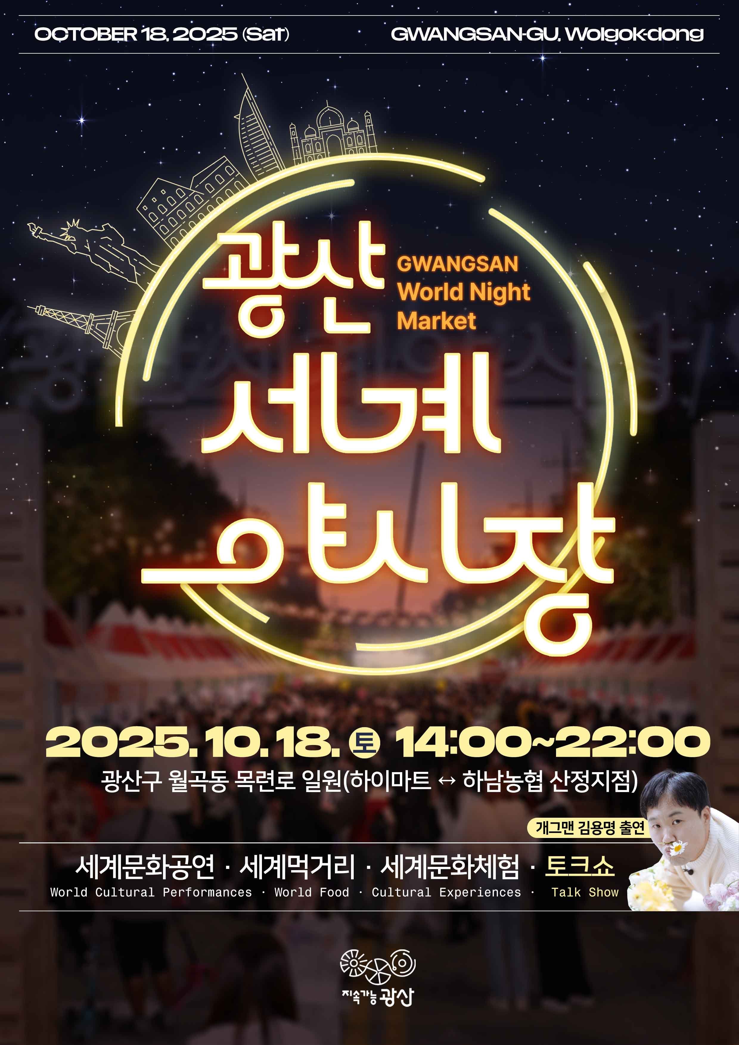 [PEDIEN] 광주 광산구가 선주민과 이주민이 함께 소통하고 화합하는 특별한 축제인 ‘2025 광산세계야시장’을 오는 18일 월곡동 일대에서 개최한다. 이번 행사는 세계 19개국 공동체가 참여해 각국의 맛과 문화를 선보이며 광주를 대표하는 글로벌 축제로의 성장을 목표로 한다.