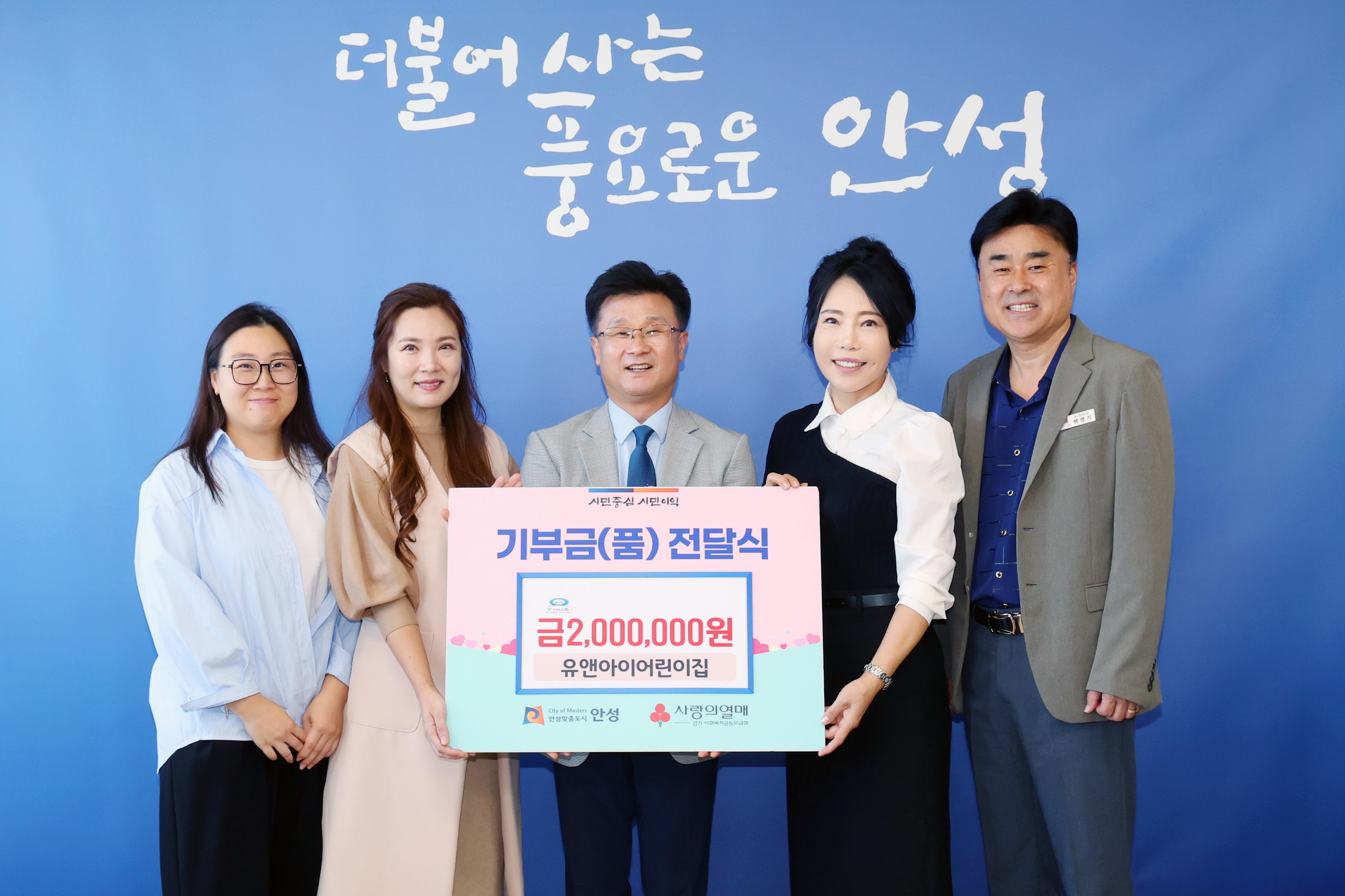 [PEDIEN] 안성시(시장 김보라)는 지난 15일 유앤아이어린이집(원장 이해욱)으로부터 현금 이백만원을 전달받았다고 밝혔다.
