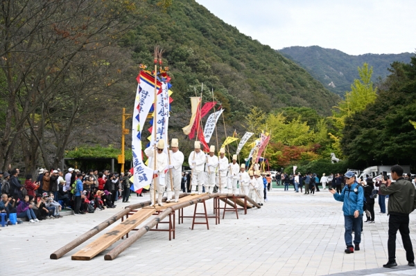 이어 상여 외나무다리 건너기와 회다지 소리 재연 등 본 공연이 진행돼 관람객과 등산객들의 이목을 끌었다.