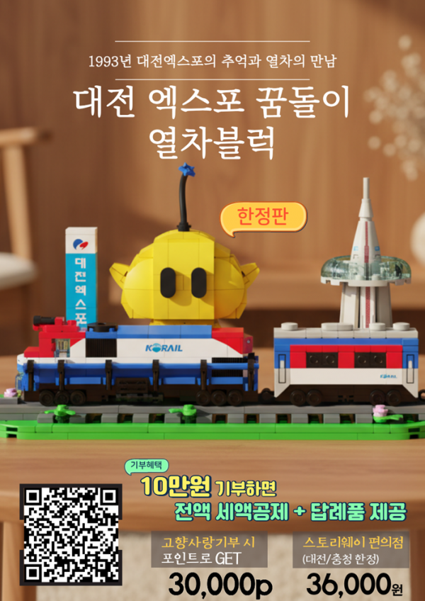 [PEDIEN] 1993년 대전엑스포의 상징과 철도 문화를 결합한 ‘대전엑스포 꿈돌이 열차블럭’ 이 고향사랑기부제 답례품으로 등록됐다.