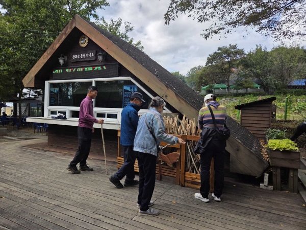 [PEDIEN] 수원특례시는 폐목재를 새활용해 만든 등산용 지팡이 500개를 광교산 등산 안내소 앞 입구에 비치했다.