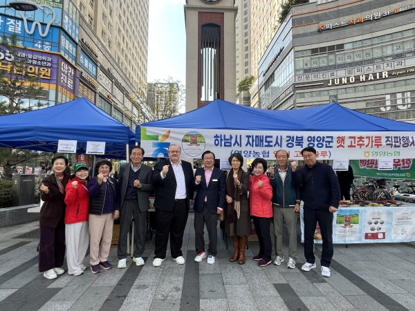 행사 현장에서는 영양군에서 직접 재배한 고춧가루, 샤인머스캣, 사과 등 신선하고 품질이 뛰어난 농특산물이 판매되어 하남시민의 큰 호응을 얻었다.