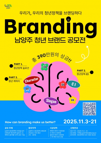 이번 공모전은 청년의 시각에서 바라본 남양주시 청년정책의 가치를 브랜딩하고 상징성과 공감대를 확산하기 위해 기획됐다.