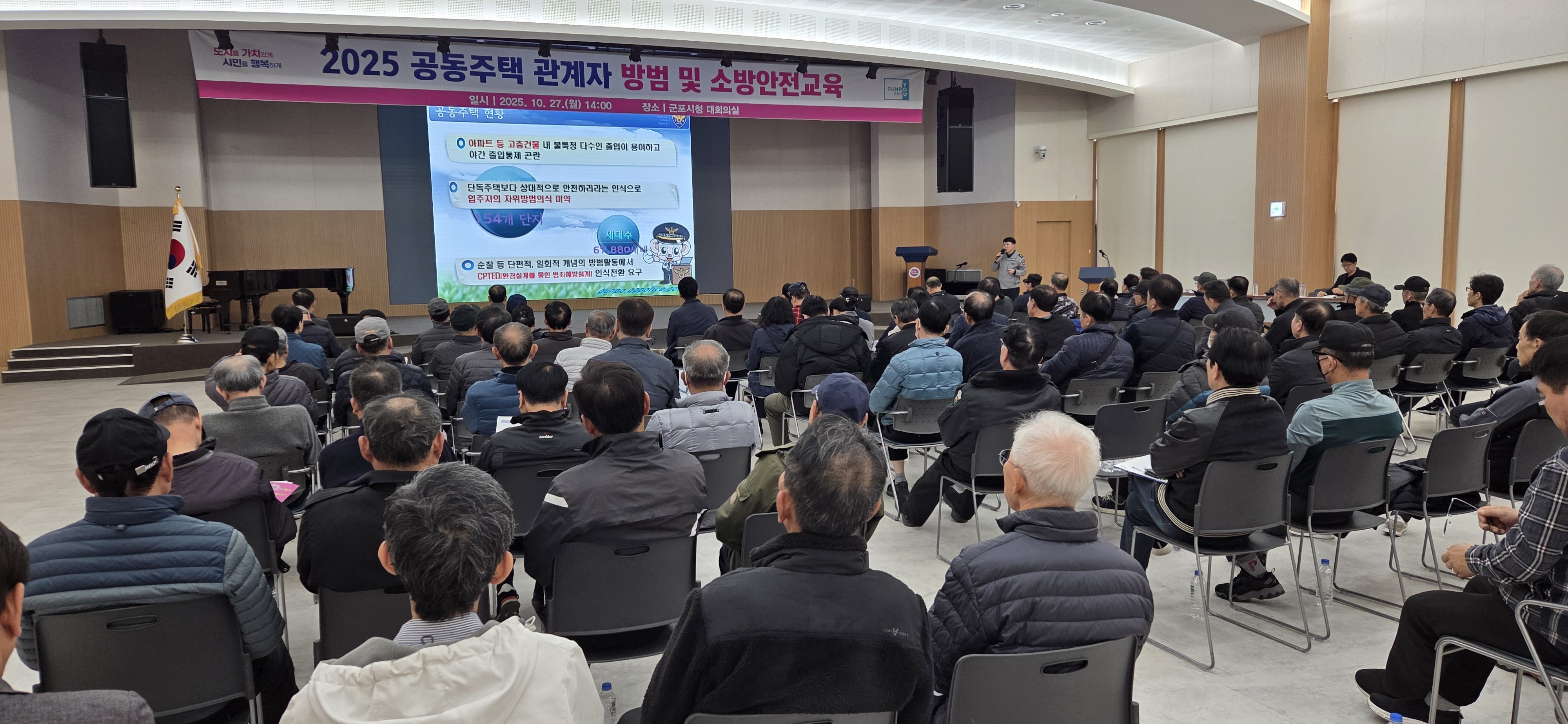 [PEDIEN] 군포시가 공동주택의 안전을 강화하기 위해 경비 업무 종사자와 시설물 안전관리자를 대상으로 방범 및 소방안전 교육을 실시했다.
