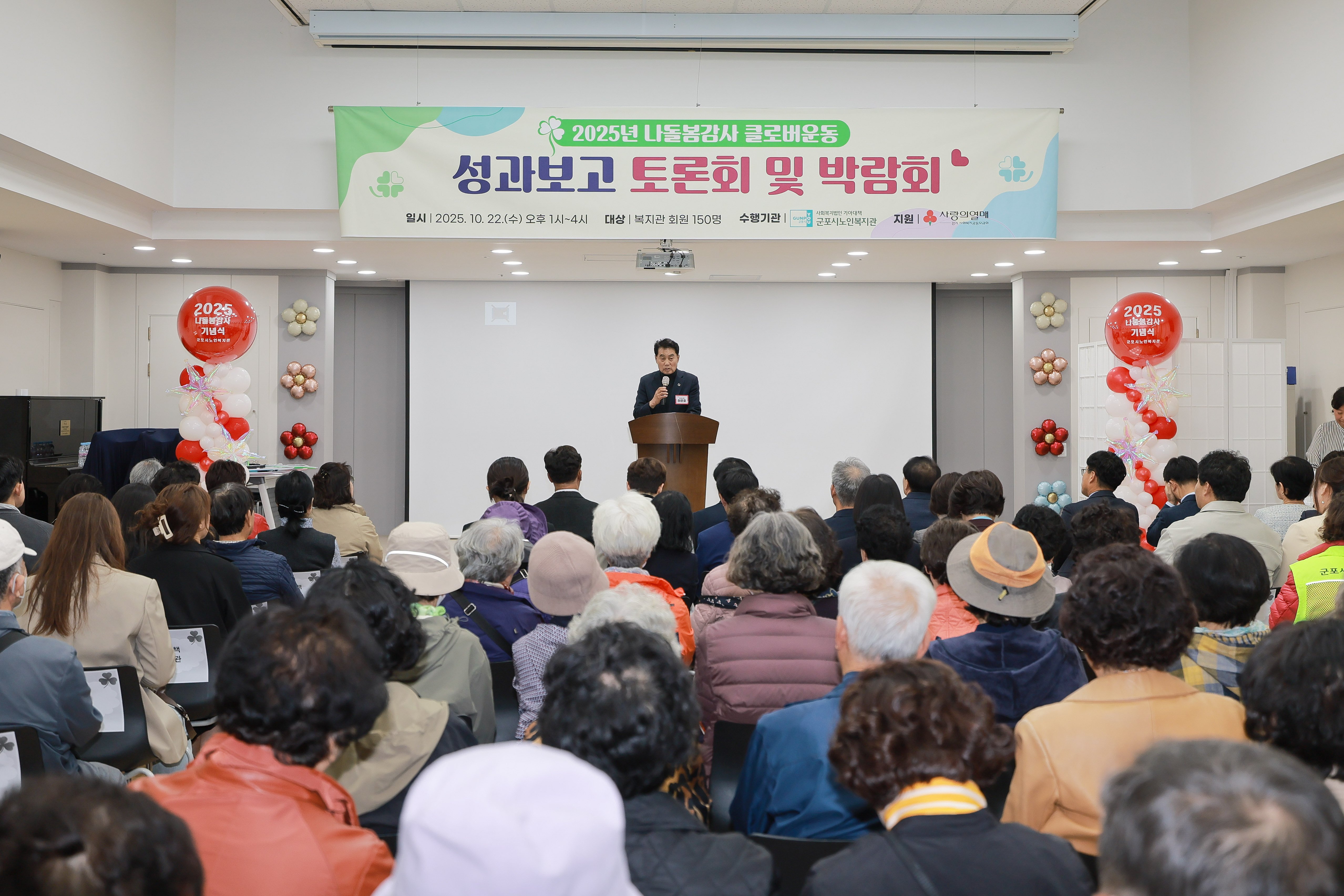 [PEDIEN] 군포시노인복지관이 지난 22일, '2025 나돌봄감사 클로버운동' 성과를 공유하는 토론회와 박람회를 성황리에 개최했다. 300여 명의 시민들이 참여한 이번 행사는 나돌봄의 중요성을 알리고, 시민들의 자발적인 참여를 독려하기 위해 마련됐다.