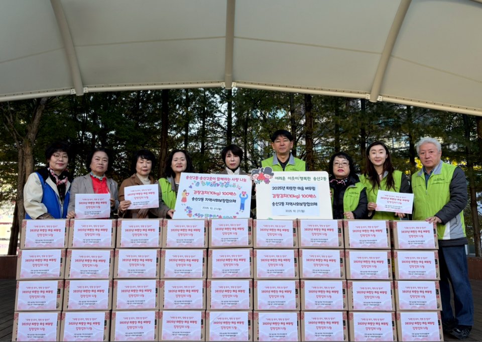 송산2동 지역사회보장협의체는 ‘2025년 따뜻한 마음 버무림 김장김치 나눔’ 행사를 통해 김장김치 완제품 100상자를 취약계층 100가구에 전달했다고 밝혔다.
