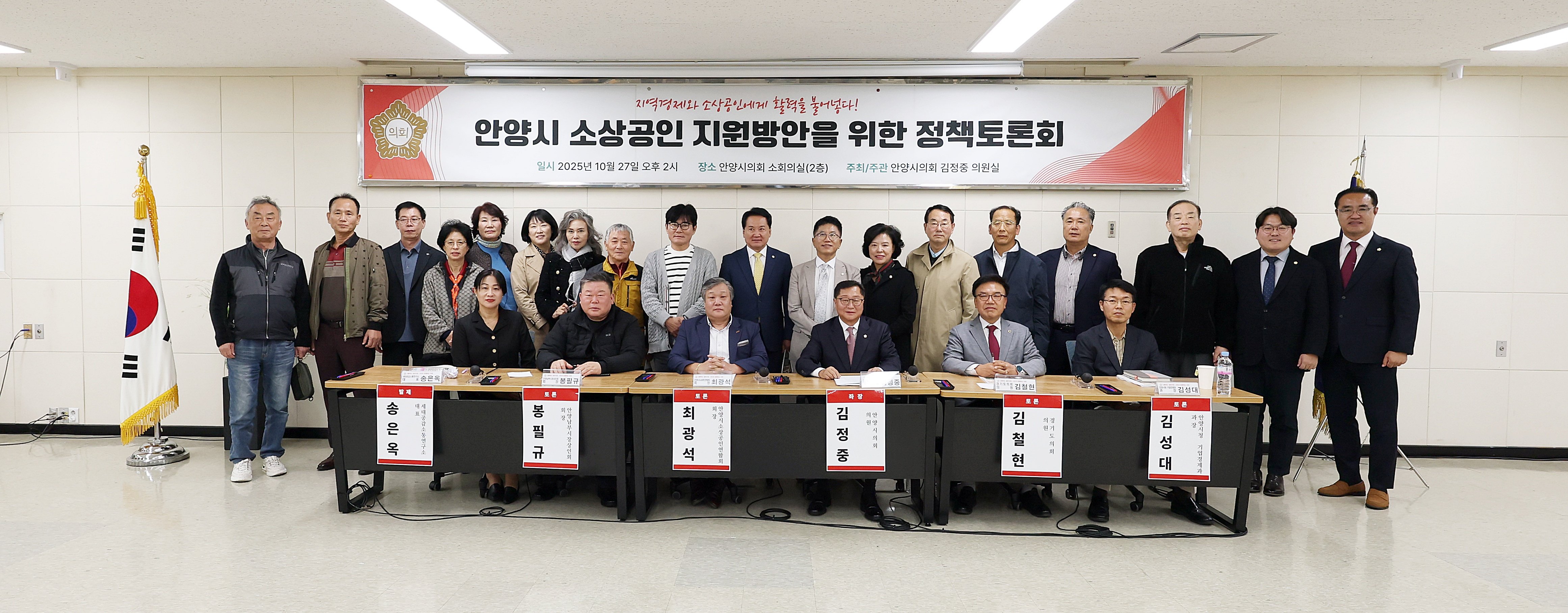 [PEDIEN] 안양시의회 김정중 의원이 주최한 ‘안양시 소상공인 지원 방안 토론회’가 27일 시의회 소회의실에서 열렸다. 이번 토론회는 지역 경제의 핵심인 소상공인들의 현실을 진단하고, 실질적인 지원 정책을 논의하기 위해 마련됐다.