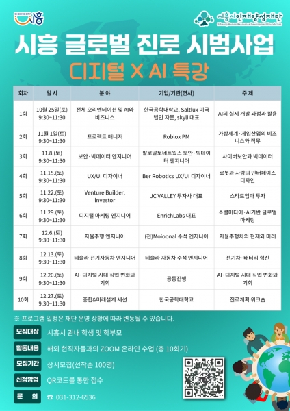 이번 사업은 시흥시 청소년의 글로벌 역량을 강화하기 위한 시범 프로그램ㅡ로 글로벌 전문가와 함께 인공지능, 자율주행, 빅데이터 등 첨단기술 사례를 학습하며 미래 산업에 대한 이해를 넓히고 진로 탐색의 기회를 제공한다.