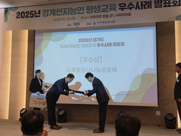 이번 발표회는 경기도가 주최하고 경기도평생교육진흥원이 주관했으며 도내에서 운영 중인 경계선지능인 평생교육 프로그램을 대상으로 우수사례를 공모해 총 5건을 선정·시상했다.