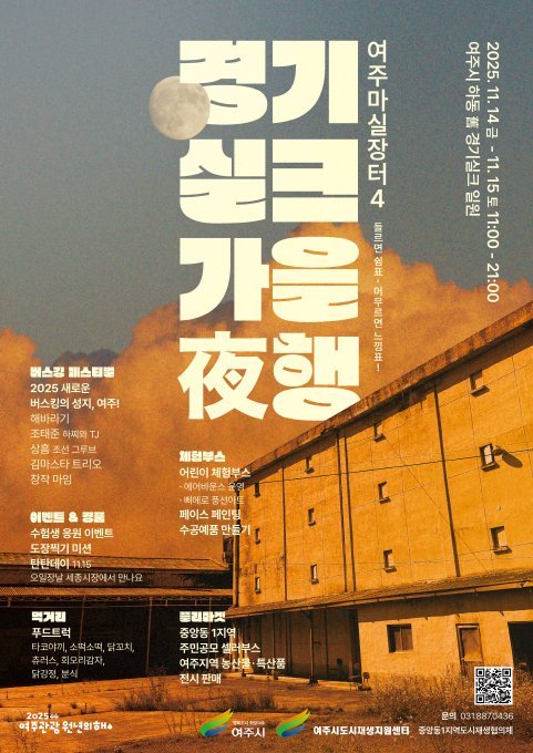 이번 행사는 '2025 새로운 버스킹의 성지, 여주!'라는 슬로건 아래, 깊어가는 가을밤의 정취를 더할 버스킹 페스티벌과 함께 다채로운 마켓과 체험을 선보일 예정이다.
