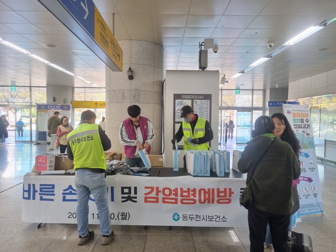 [PEDIEN] 동두천시보건소가 지난 10일 지행역사 내 맞이방에서 감염병 예방 홍보 캠페인을 진행했다.