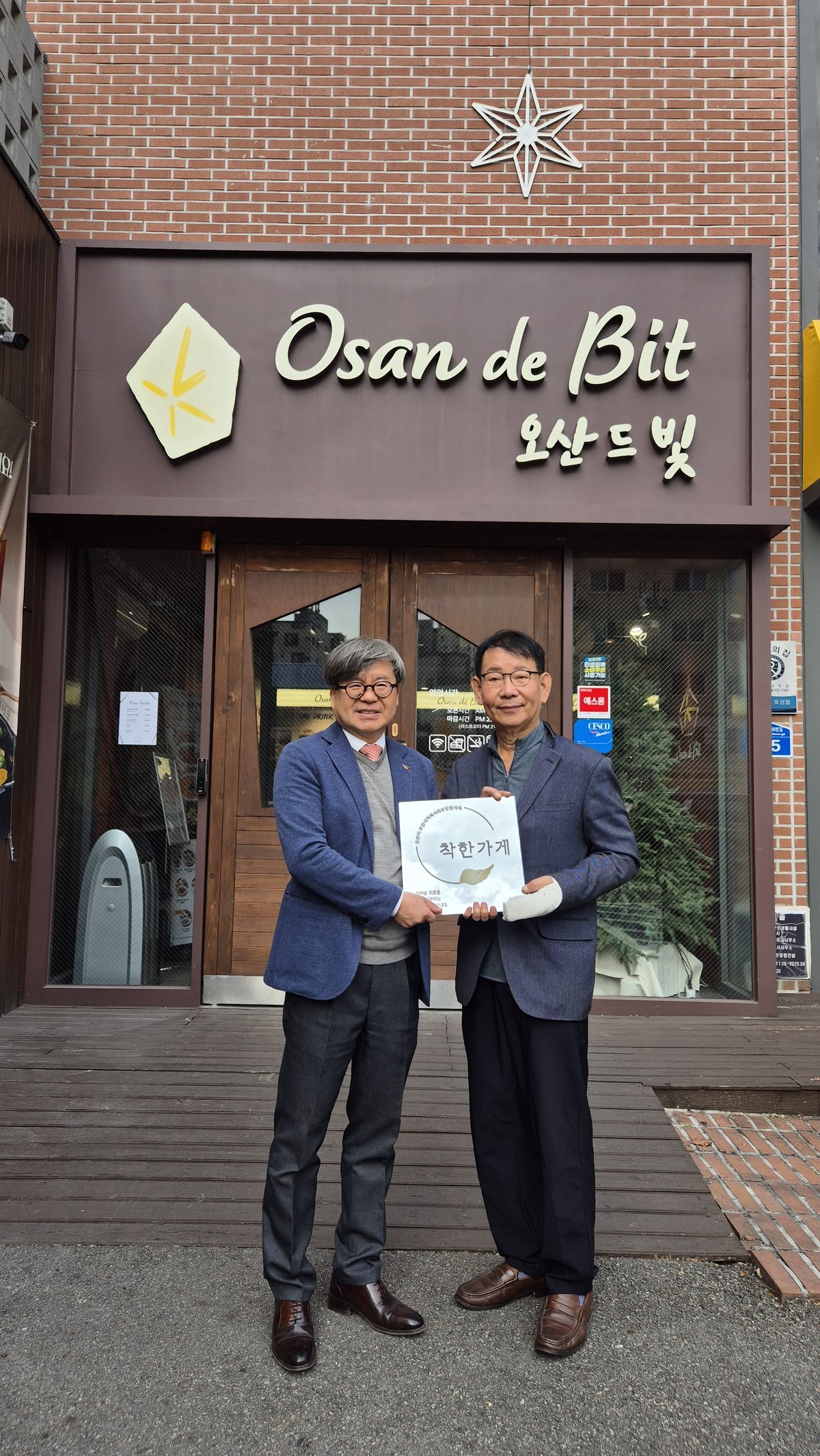 이번 전달식에서는 신규 착한가게로 참여한 ‘오산드빛’에 인증스티커를 전달하고 기존 착한가게들을 순회 방문해 2025년도 착한가게 인증스티커를 부착하는 방식으로 진행됐다.