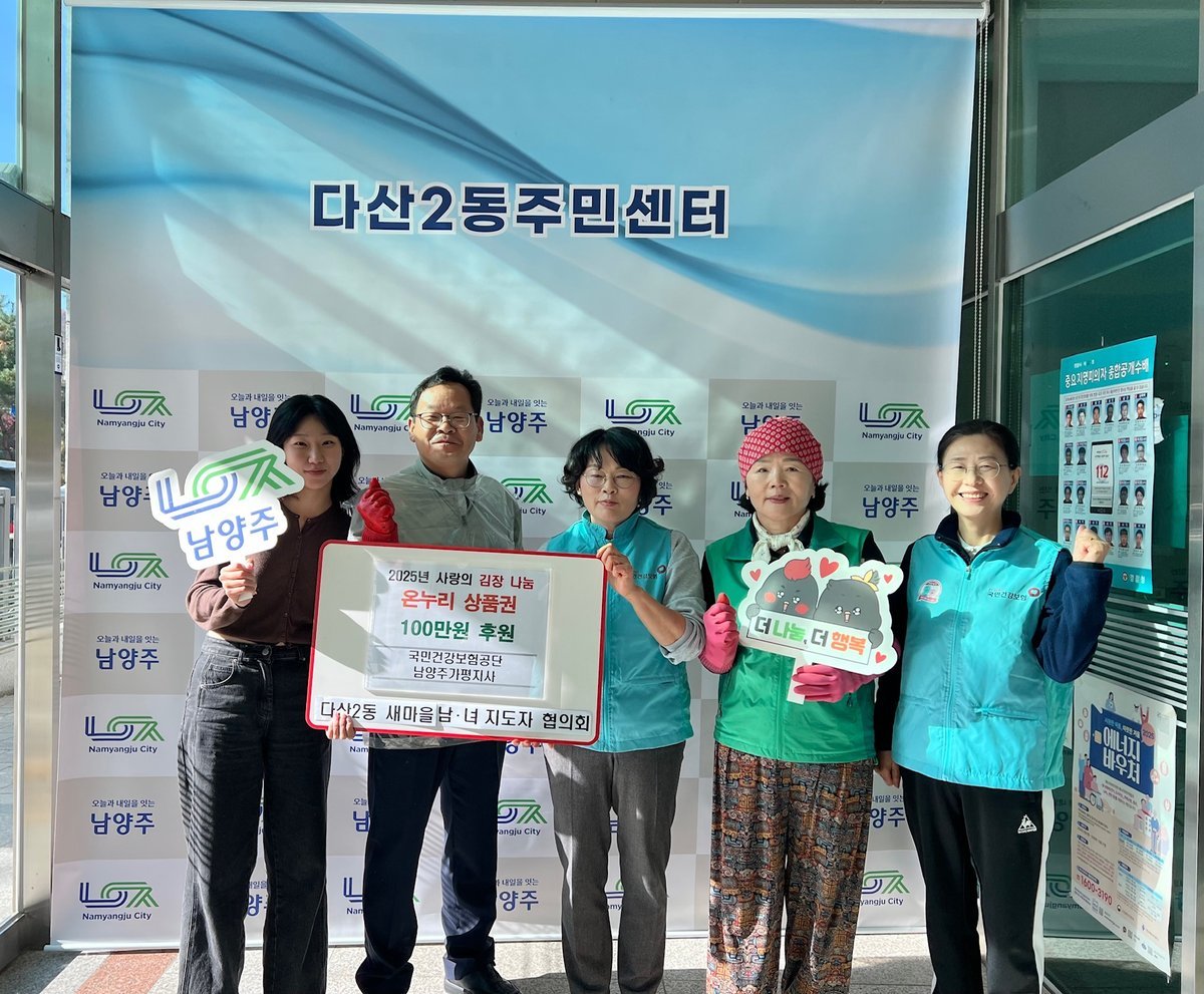 [PEDIEN] 국민건강보험공단 남양주가평지사가 다산2동의 사랑의 김장 나눔 행사에 온누리상품권 100만원을 기부하며 따뜻한 온정을 전했다.