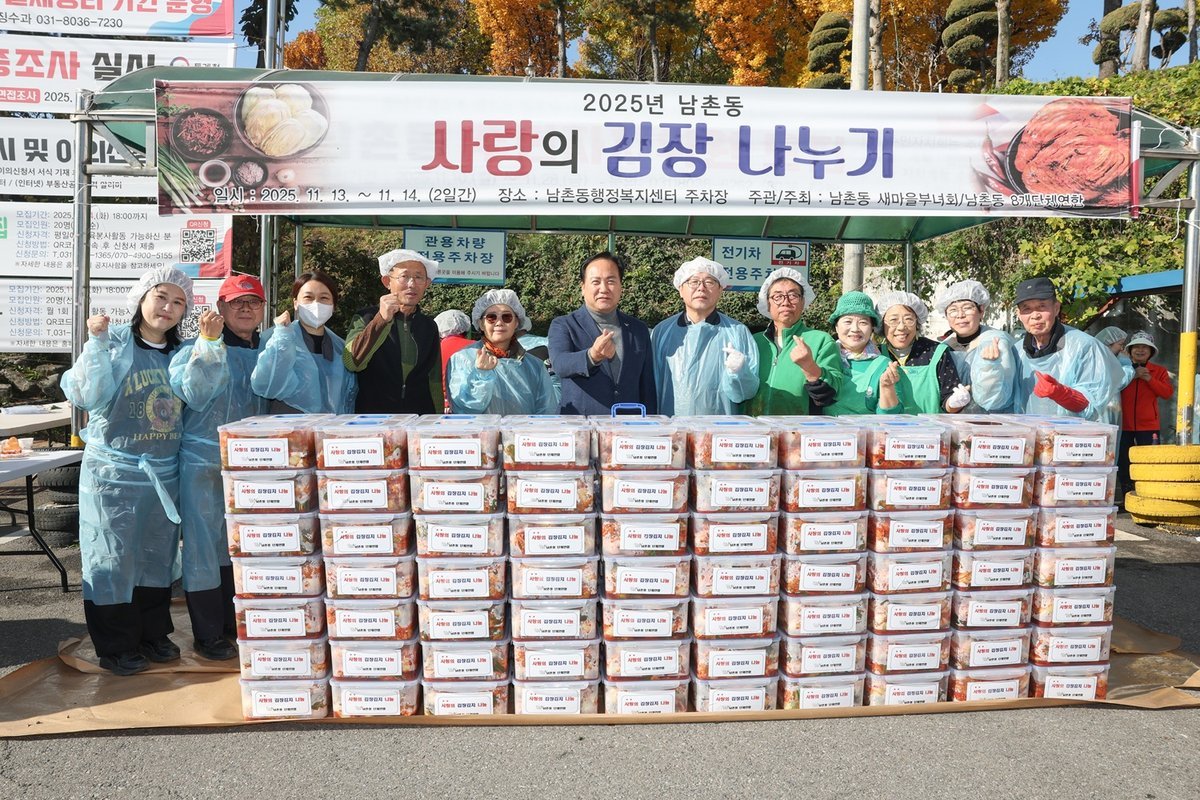 이번 행사는 남촌동 새마을회 주관으로 진행됐으며, 남촌동 통장협의회가 1년 동안 직접 재배한 배추 800포기와 무, 갓, 쪽파 등 신선한 재료가 사용됐다. 행사에는 8개 단체 연합회원 70여 명이 참여해 배추 800포기로 김장김치를 정성껏 담갔으며, 완성된 김치는 남촌동 취약계층 180여 가구에 전달되었다.