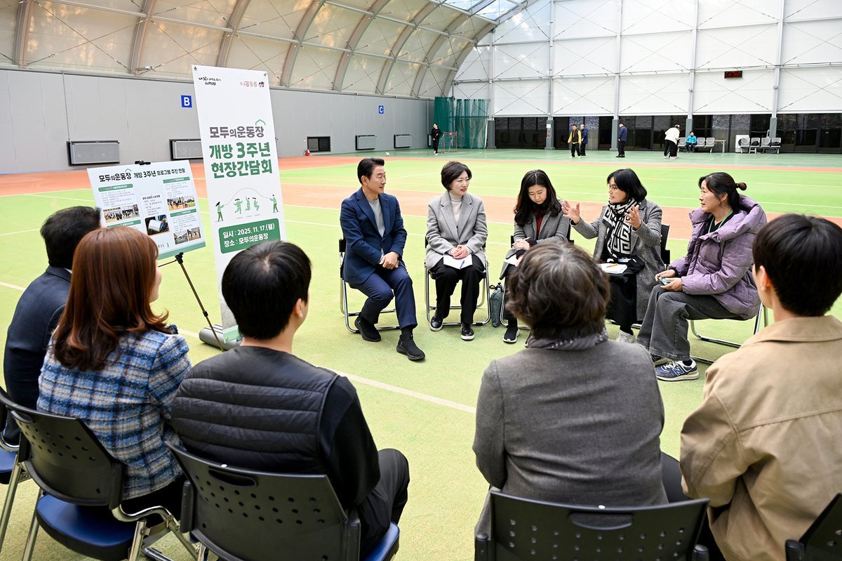 의정부시는 지난 17일, 모두의운동장에서 개방 3주년 기념 현장 간담회를 개최하고 운영 성과를 공유하는 시간을 가졌다. 간담회에는 김동근 시장을 비롯해 의정부시사회복지협의회, 경기장애인부모연대 의정부시지회 등 지역 복지기관 관계자들이 참석했다.