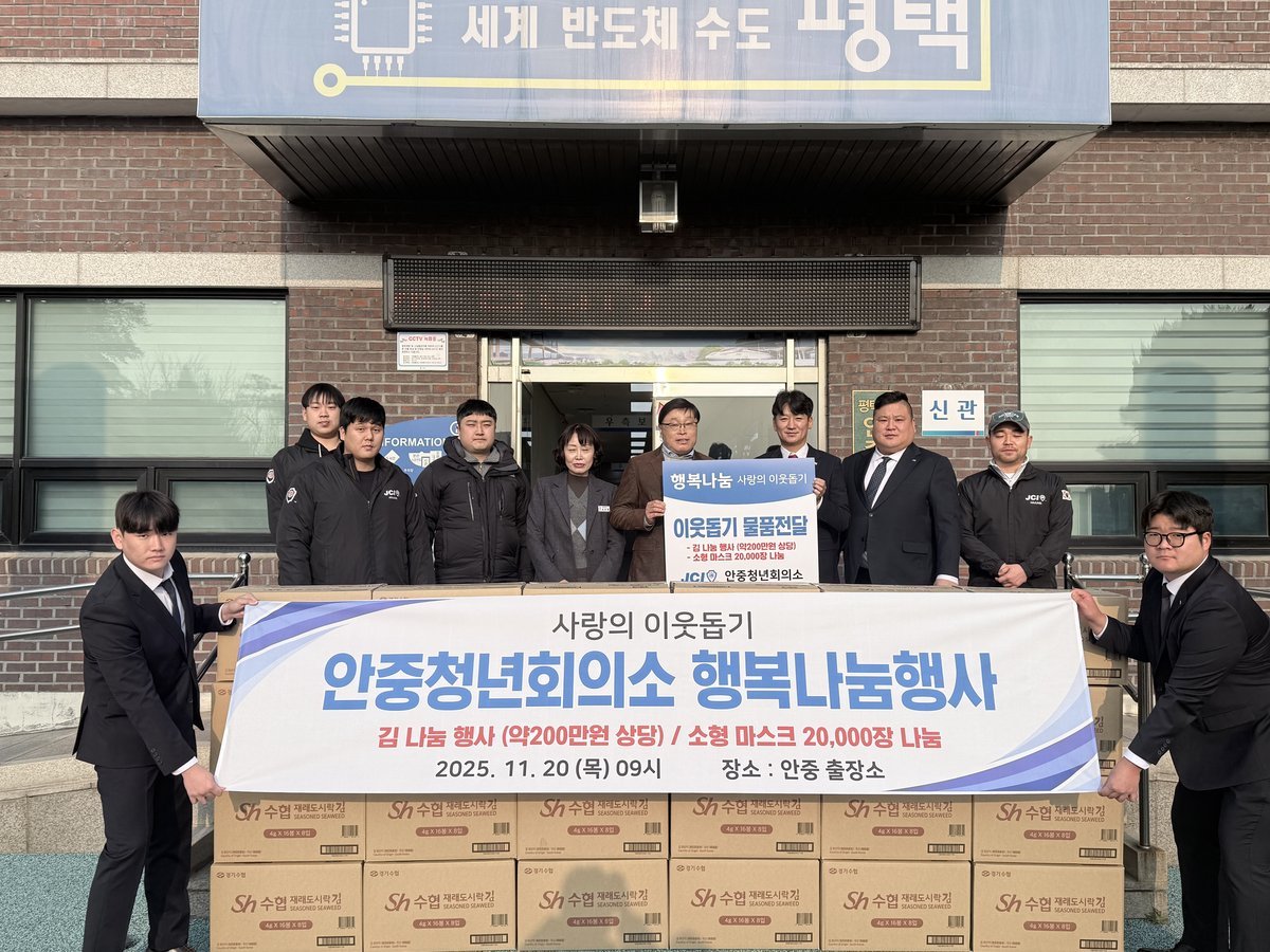 문종호 안중출장소장은 “어려운 이웃을 위한 따뜻한 나눔을 실천해주신 청년회의소에 깊이 감사드린다”며 고마움을 표했다.