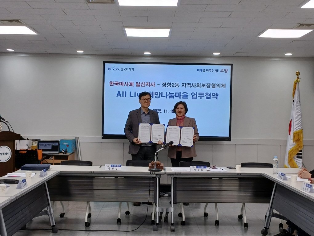 장항2동 지역사회보장협의체는 한국마사회 일산지사와 'All Live 희망 나눔 마을' 업무 협약을 체결했다고 밝혔다. 이번 협약은 지역 내 복지 사각지대를 해소하고 나눔 문화를 확산하기 위해 마련됐다.