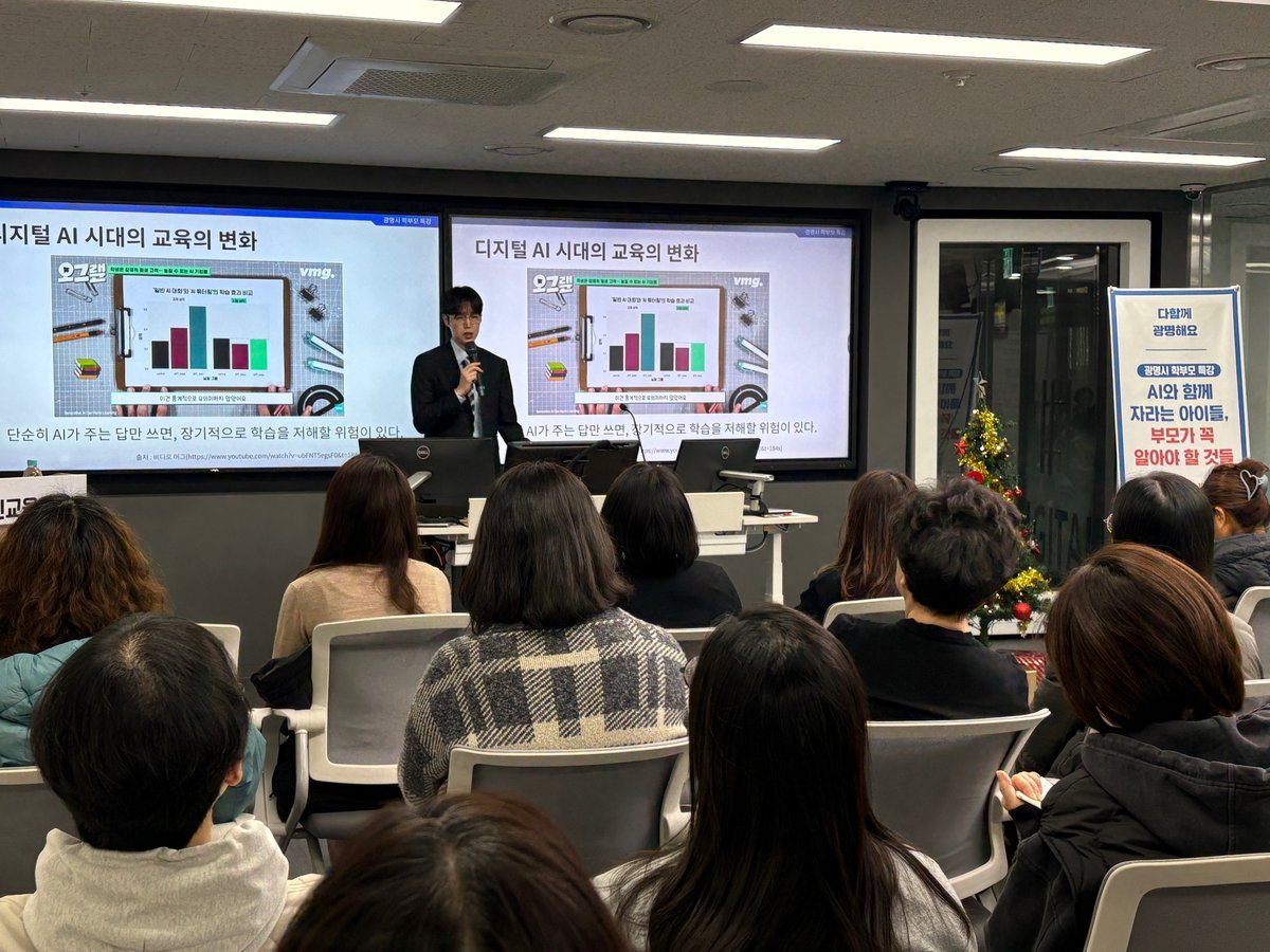 특강은 '생성형 AI 시대, 공부의 판이 바뀐다', '우리 아이, 올바른 디지털 시민으로 키우기', '자기 주도 학습과 AI 시대 부모의 역할' 등 총 3회 과정으로 구성되었다.