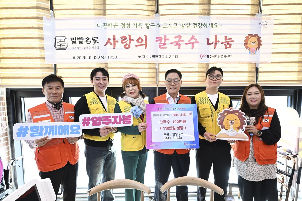 [PEDIEN] 양주시 대표 맛집 밀밭명가가 양주시자원봉사센터와 함께 지역 어르신과 장애인을 위한 '사랑의 칼국수 나눔' 행사를 13일 개최했다.
