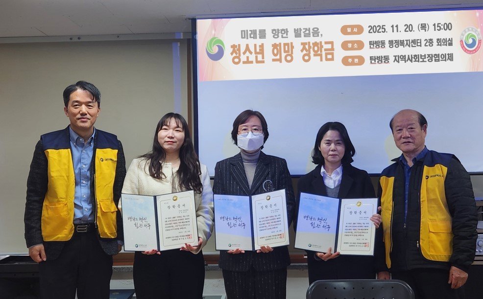 탄방동 지역사회보장협의체는 21일, 관내 주민들과 함께 십시일반 모금한 장학금 300만원을 경제적 어려움을 겪는 학생 10명에게 전달했다고 밝혔다. 이번 장학금은 학생들이 꿈을 향해 나아가는 데 작은 보탬이 되고자 마련됐다.