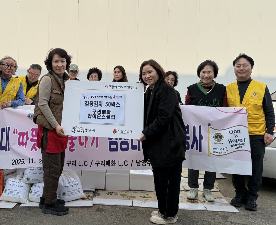 이연실 구리매화라이온스클럽 회장은 추운 겨울을 맞아 어려운 이웃들이 따뜻하게 지내기를 바라는 마음으로 김치를 준비했다고 밝혔다. 앞으로도 지역 내 취약계층을 위한 지속적인 나눔과 봉사에 힘쓸 것을 약속했다.