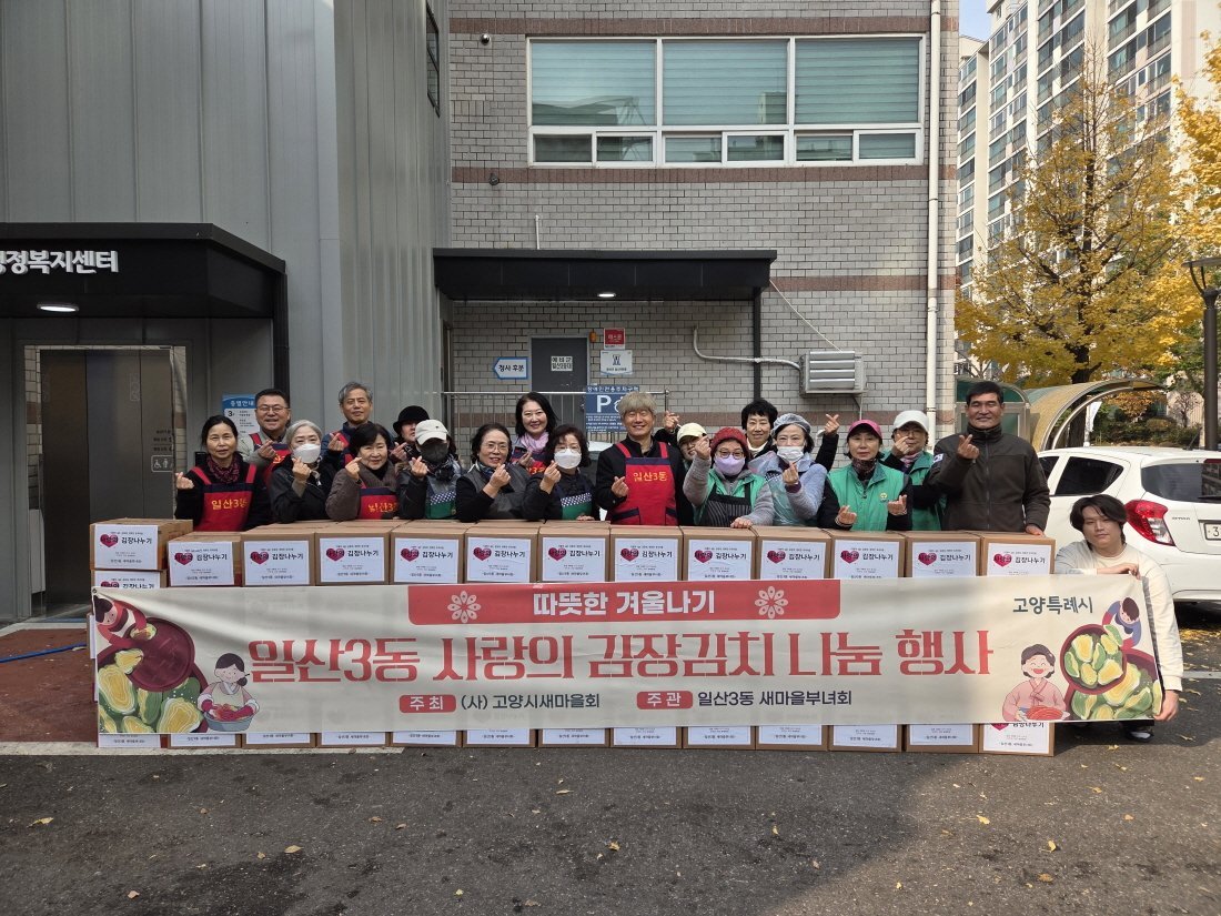 박광영 일산3동장은 “이른 아침부터 김장김치를 준비하고 직접 전달까지 해 주신 새마을부녀회와 직능단체 회원들께 진심으로 감사드린다”며 “이번 나눔 행사가 생계에 어려움을 겪고 있는 저소득층 주민들에게 실질적인 도움이 되기를 희망한다”고 밝혔다.