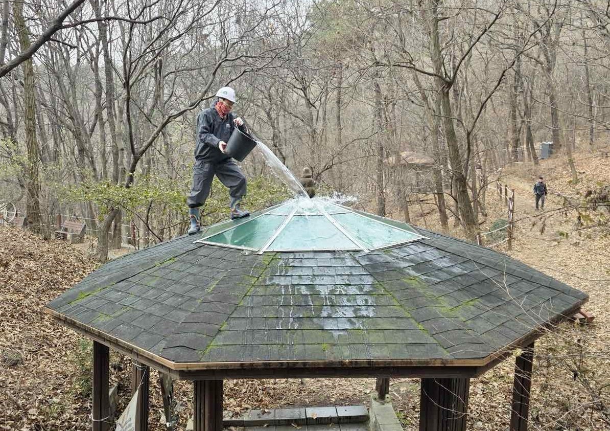 장안구는 낙엽이 빗물과 섞여 시설물 주변에 쌓이면서 발생할 수 있는 배수 문제와 미관 저해를 예방하고자 이번 청소를 계획했다. 특히 비가림막 상단의 낙엽을 깨끗하게 제거하고, 취수구 틈새의 오염 물질을 꼼꼼히 세척하여 주민들이 더욱 쾌적하게 약수터를 이용할 수 있도록 했다.
