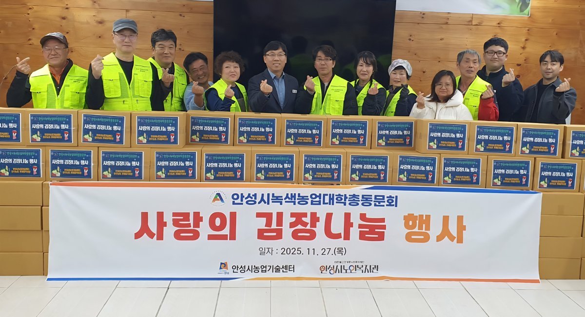 [PEDIEN] 안성시농업기술센터는 11월 26일~27일 안성시녹색농업대학 동문회에서 지역 독거노인 및 취약계층을 위한 사랑의 김장김치 나눔행사를 실시하였다고 밝혔다.
