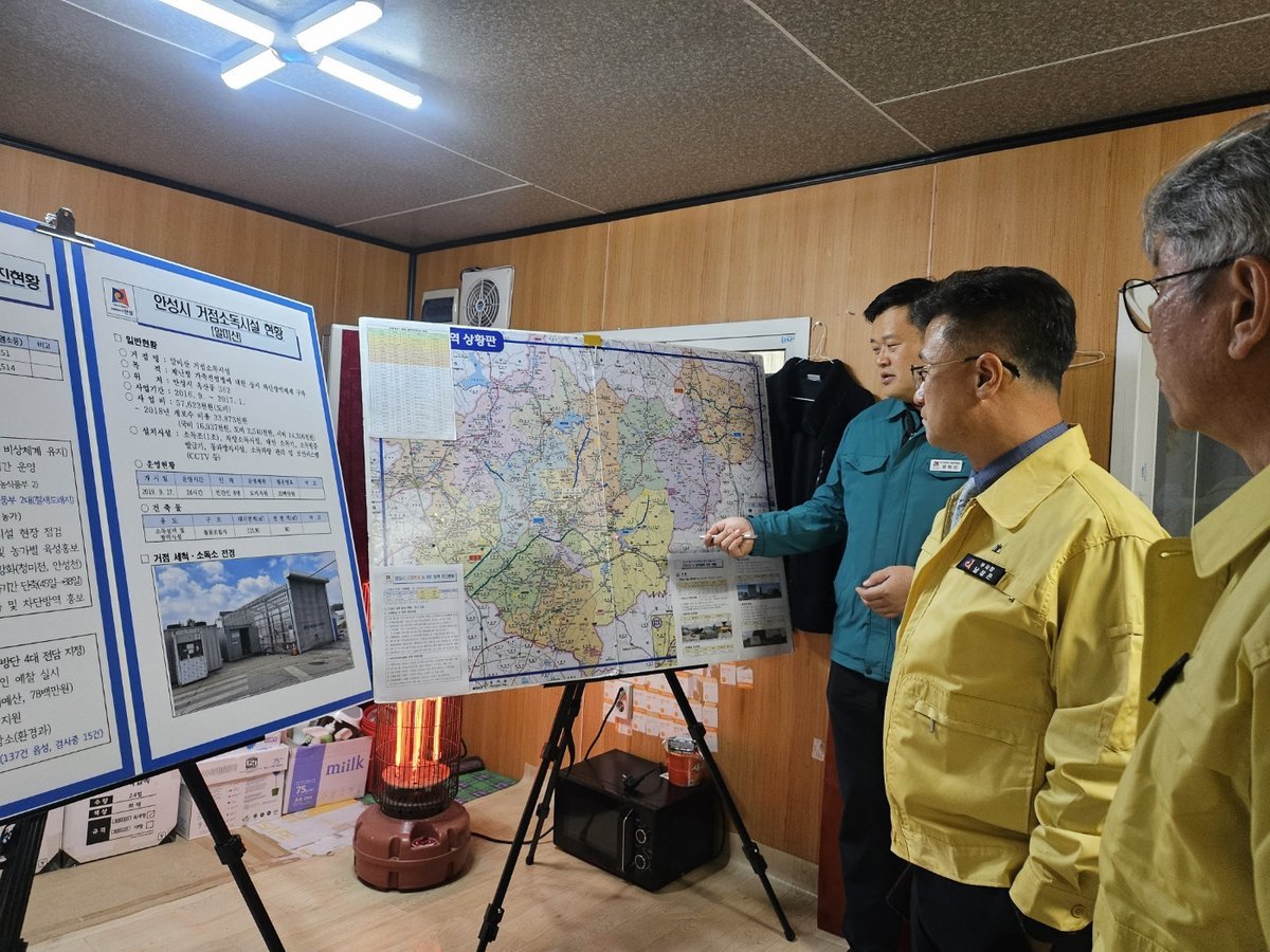 남상 안성시 부시장은 지난 27일 옥산동 알미산 거점소독시설을 방문해 방역 상황을 점검했다. 이 시설은 하루 평균 약 170대의 축산 관련 차량이 이용하는 주요 거점이다.