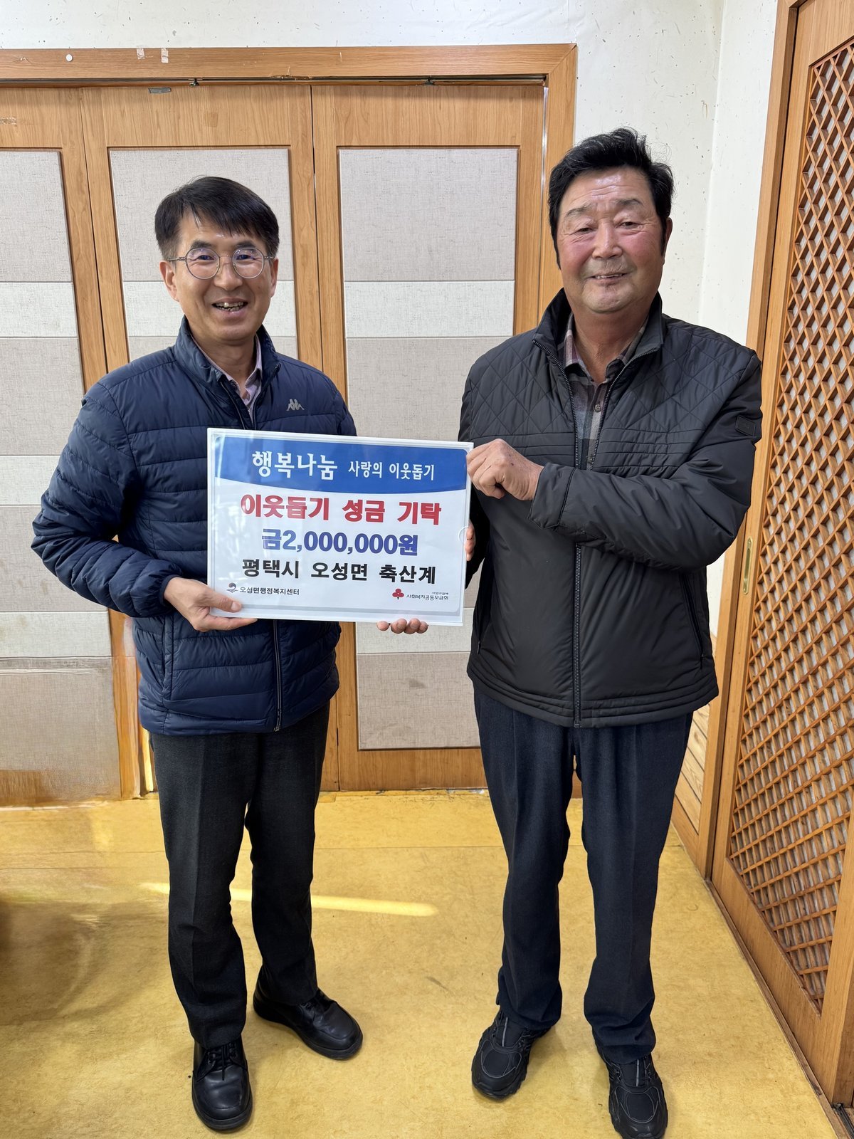[PEDIEN] 평택시 오성면 축산계가 연말을 맞아 지역 내 어려운 이웃들의 따뜻한 겨울나기를 지원하기 위해 200만원의 성금을 기탁했다.