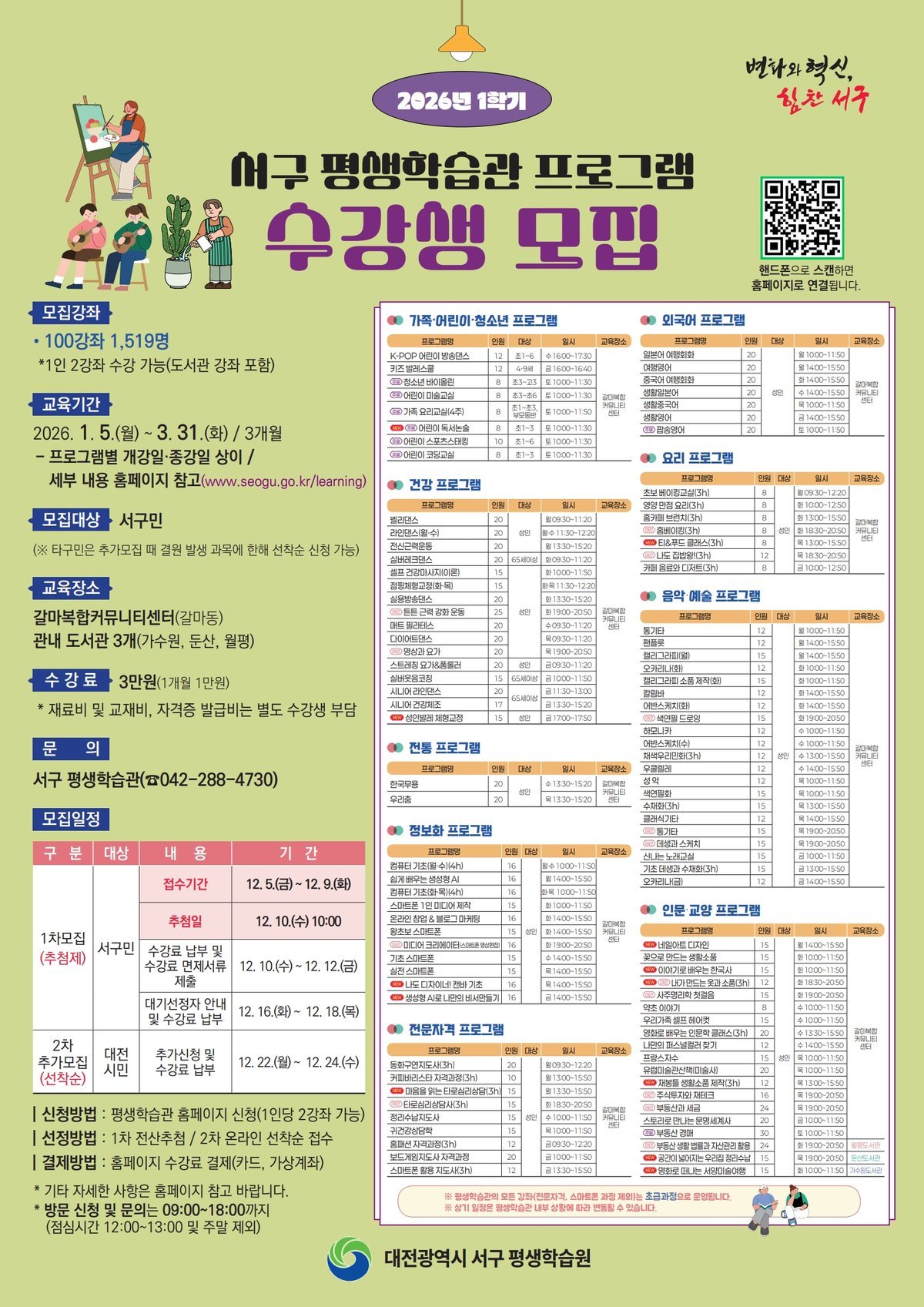 [PEDIEN] 대전 서구가 2026년 1학기 평생학습관 프로그램 수강생을 모집한다. 모집 기간은 12월 5일부터 24일까지다.