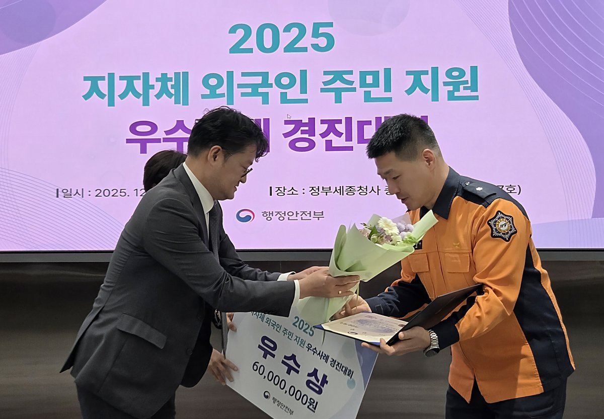 [PEDIEN] 대전동부소방서가 행정안전부 주관 '2025년 지자체 외국인 주민 지원 우수사례 경진대회'에서 우수상을 수상하며 대전시의 외국인 안전 정책이 전국적으로 인정받았다.
