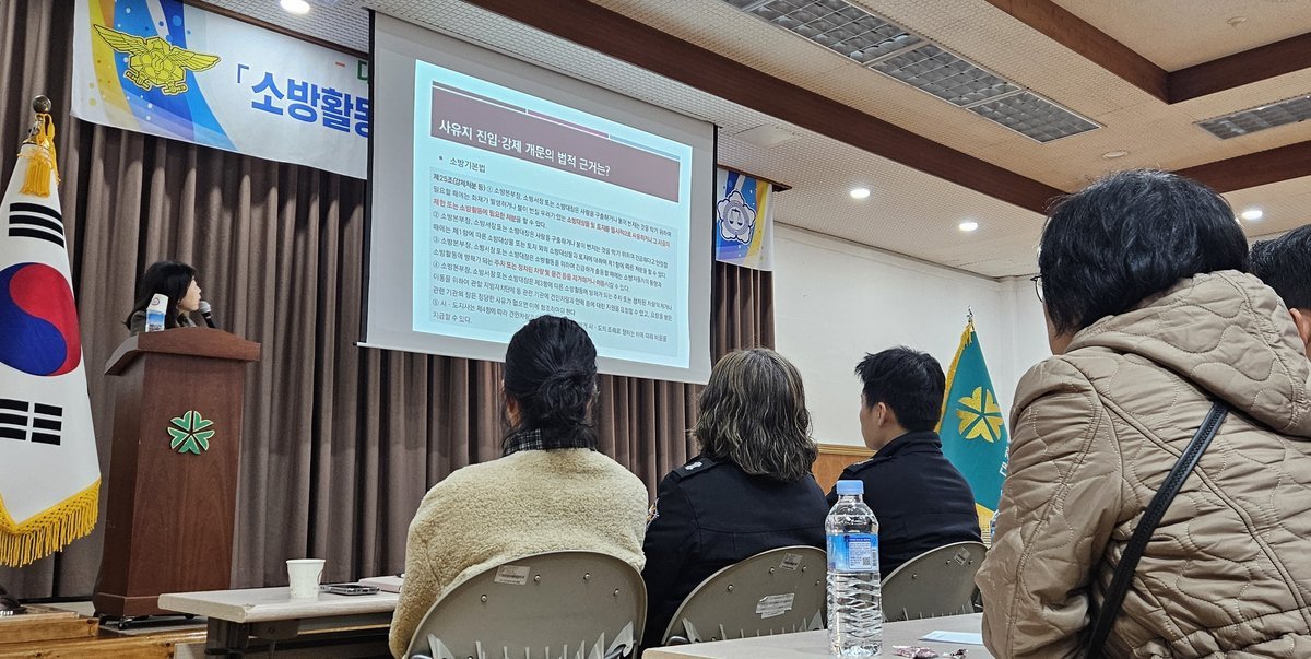 교육 내용은 소방활동 중 발생할 수 있는 민형사 사건별 대응 절차, 소방공무원의 법적 권한과 책임, 소송 제기 시 지원 체계 및 보호 장치 등으로 구성됐다.