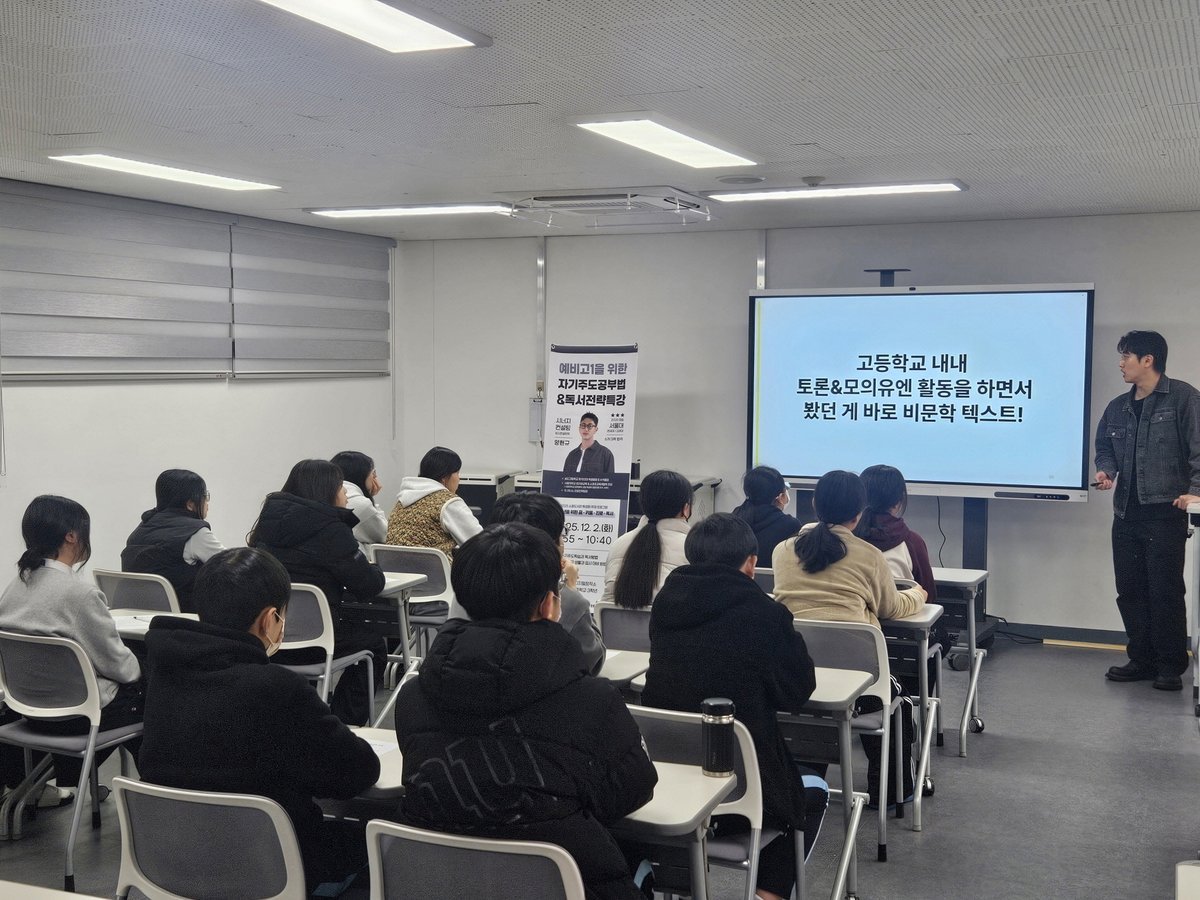 특강에서는 자기주도적인 시간 관리 방법, 독서 기반 수행평가 대비 전략, 구체적인 목표 설정 방법 등 고등학교 생활에 실질적으로 도움이 되는 내용들이 다뤄졌다. 양현규 강사는 고교 교과 과정을 상세히 설명하고, 독서를 활용한 수행평가 대비 전략과 학습 계획 수립 방법을 제시하여 학생들의 적극적인 참여를 이끌었다.
