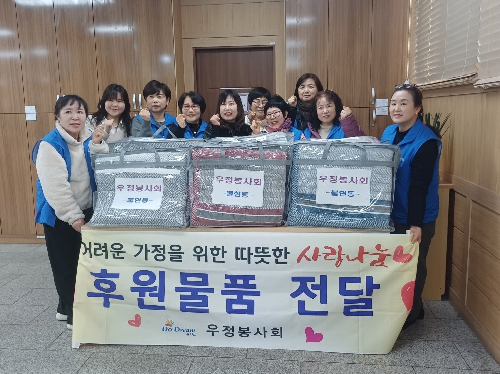 김영미 불현동장은 “우정봉사회와 공한솔 대표의 따뜻한 마음에 감사드린다”며, “전달된 이불이 어려운 이웃들에게 따뜻한 겨울을 선물할 수 있기를 기대한다”고 전했다.