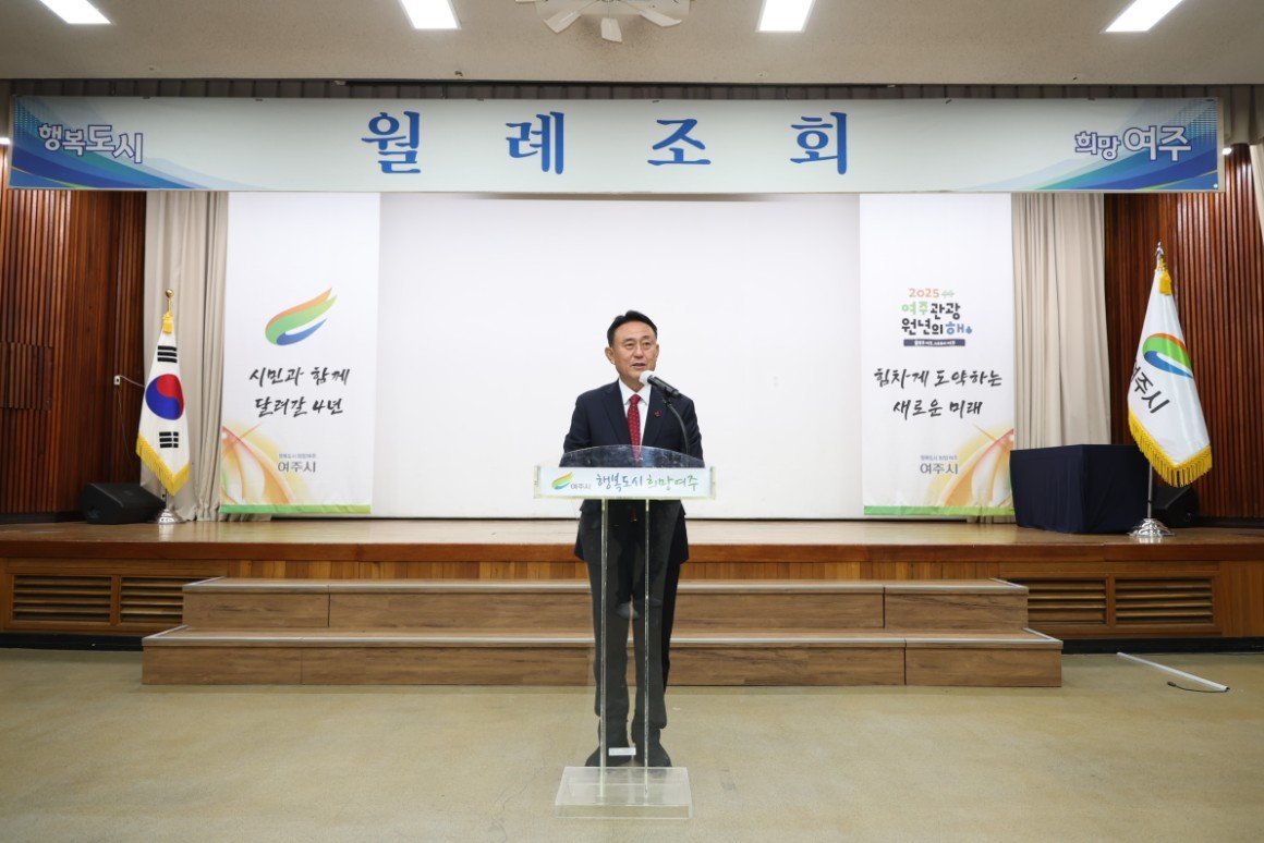 [PEDIEN] 여주시가 11월의 주요 성과를 공유하고, 12월에 중점적으로 추진해야 할 사항들을 점검하는 월례조회를 개최했다.