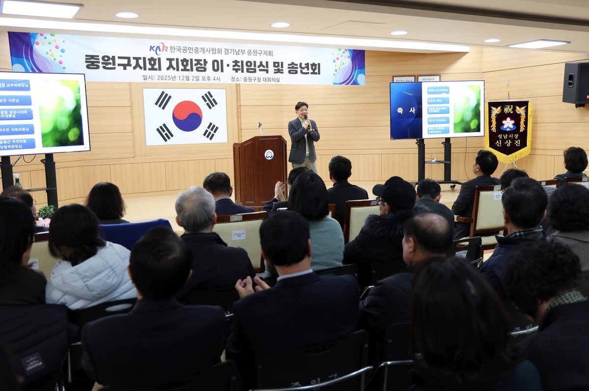 [PEDIEN] 성남시의회는 지난 2일 중원구청 대회의실에서 열린 한국공인중개사협회 중원구지회 송년회에 참석해 부동산 시장 안정에 대한 의지를 밝혔다.