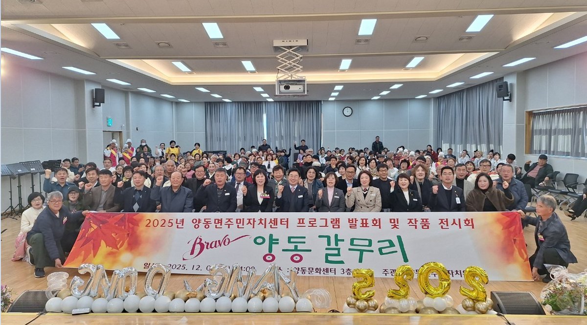 장미경 양동면 주민자치위원장은 “이번 발표회를 통해 주민들의 재능과 열정을 다시 한번 확인할 수 있었다”며 “앞으로도 주민자치센터가 주민들의 평생교육과 소통의 장으로 자리매김할 수 있도록 더욱 노력하겠다”고 말했다.