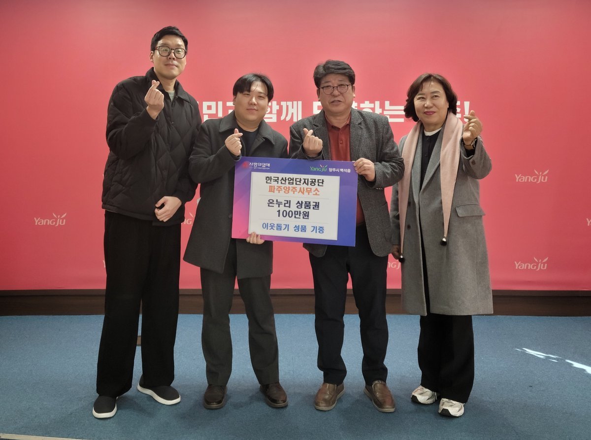 이범호 한국산업단지공단 파주양주사무소장은 “지역과 함께 성장하는 기관으로서 어려운 이웃을 돕는 것은 당연한 일”이라며, “앞으로도 지역사회에 실질적인 도움이 될 수 있는 나눔 활동을 지속적으로 추진할 것”이라고 밝혔다.