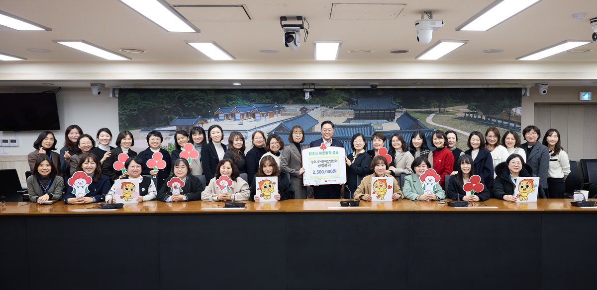 전달식에는 박지숙 분과장을 비롯한 공립분과 임원 및 회원 30여 명이 참석하여 따뜻한 마음을 전했다. 기탁된 성금은 경기 사회복지공동모금회를 통해 양주시 관내 취약계층에게 전달될 예정이다.