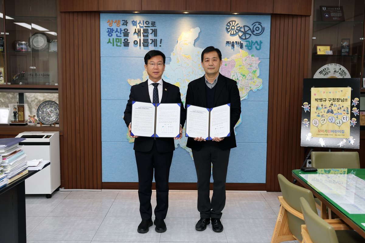[PEDIEN] 광주 광산구가 11일 구청장실에서 자원선순환 체계 구축과 탄소중립 실현을 위해 ㈜미래에코에너지와 ‘커피찌꺼기 재자원화’업무협약을 체결했다.
