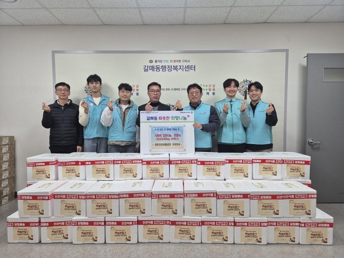 건보공단 구리지사는 갈매동 행정복지센터에서 김장 김치 5kg 50박스를 기탁하고, 지역 내 의료취약계층 50가구에 전달하며 지역사회 의료·요양 통합돌봄 안전망 강화에 나섰다.