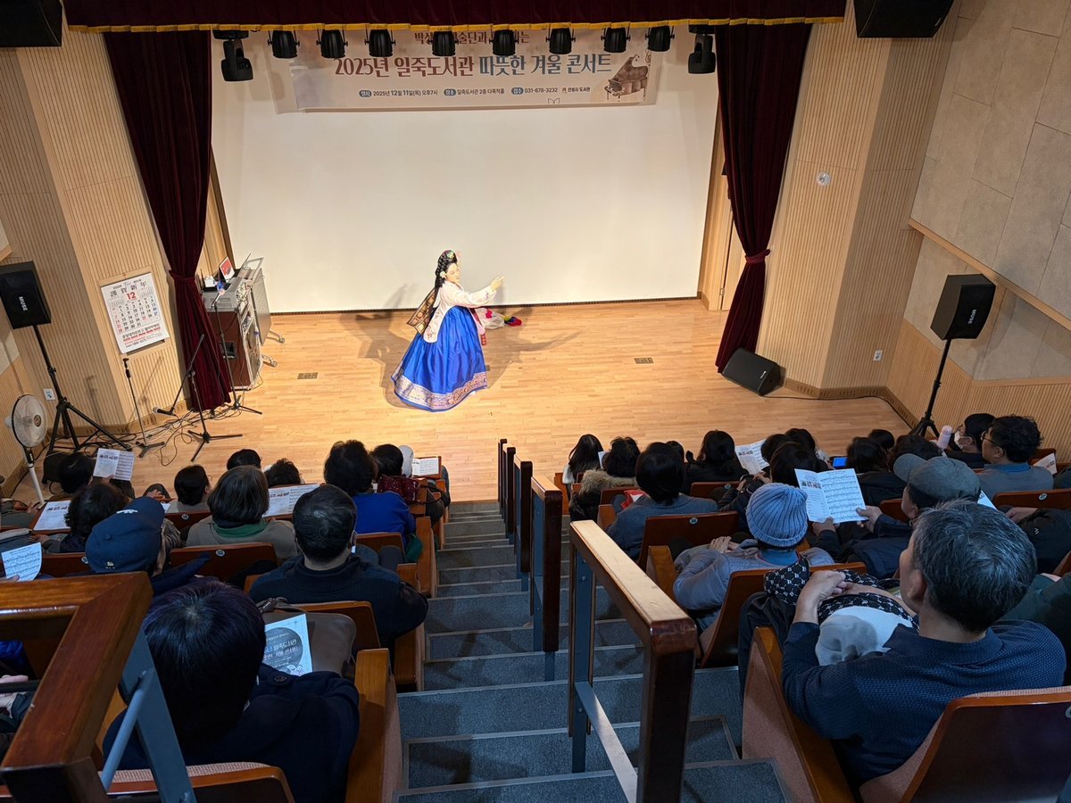 일죽도서관 2층 다목적홀에서 열린 이번 공연은 연말을 맞아 이용자들이 일상 속에서 문화와 예술을 접할 기회를 제공하고자 마련된 프로그램으로, 전통무용, 국악, 해금, 성악 등 다양한 장르가 어우러진 공연을 선보였다