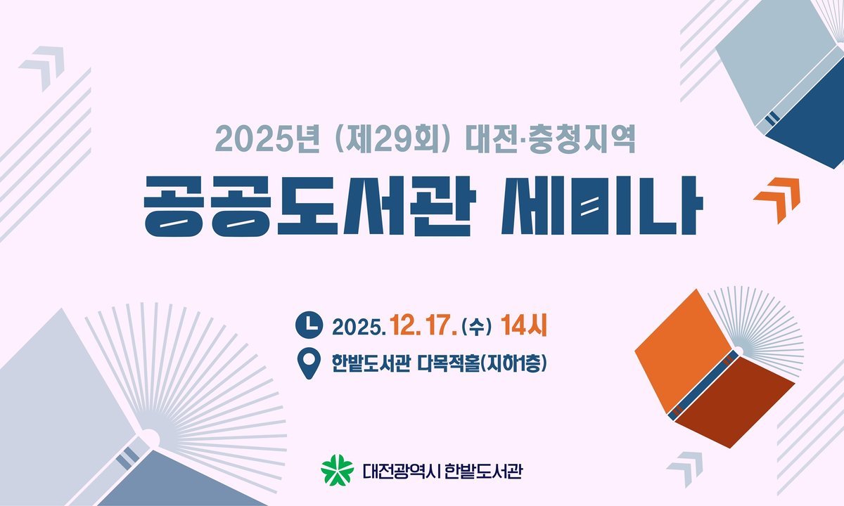 [PEDIEN] 한밭도서관은 17일 오후 2시, 한밭도서관 다목적홀에서 대전충청지역 공공도서관 사서 및 직원을 대상으로 ‘2025 대전․충청지역 공공도서관 세미나’를 개최한다.