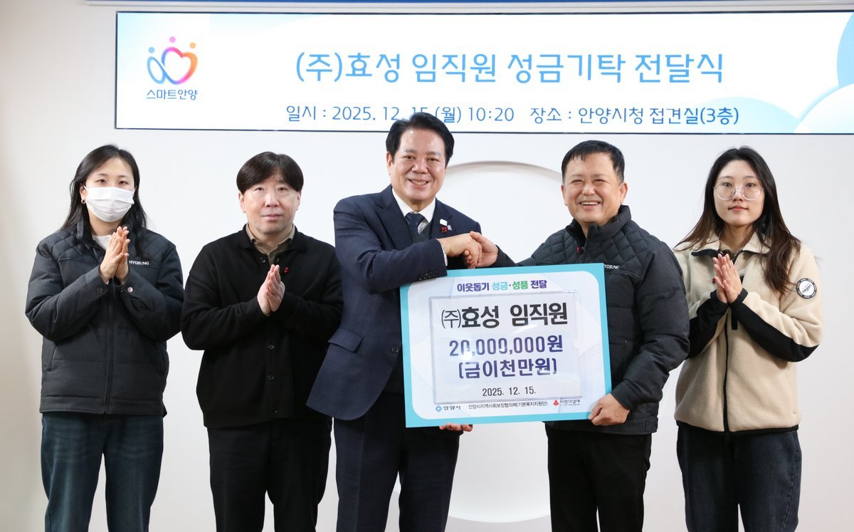 기탁식은 안양시청에서 최대호 안양시장과 최영화 ㈜효성 안양공장 관리부장 등 관계자들이 참석한 가운데 진행됐다. 최영화 부장은 “임직원들의 작은 정성이 어려운 이웃들에게 실질적인 도움이 되기를 바란다”며 지속적인 나눔 활동을 약속했다.