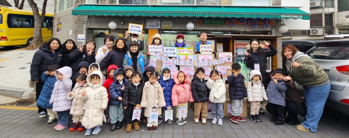 이번 나눔 활동에는 어린이집 원생 30여 명이 직접 참여했다. 아이들은 과자, 라면 등 평소 즐겨 먹는 생필품을 직접 골라 소이곳간에 전달하며 나눔의 기쁨을 체험했다.