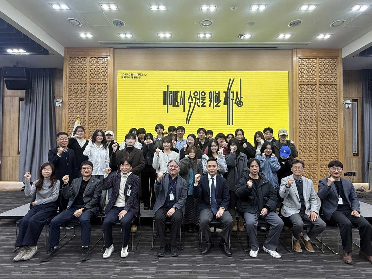 수원시는 지난 16일 시청 중회의실에서 경희대학교와 '수원시·대학교 간 도시미래 공동연구' 발표회를 열고, 대학생들의 참신한 아이디어를 공유했다. 이 연구는 대학생들이 수원시 도시 공간을 분석하고, 도시 정책과 연계할 수 있는 아이디어를 제안하는 관학 협력 사업으로, 2014년부터 매년 진행되고 있다.