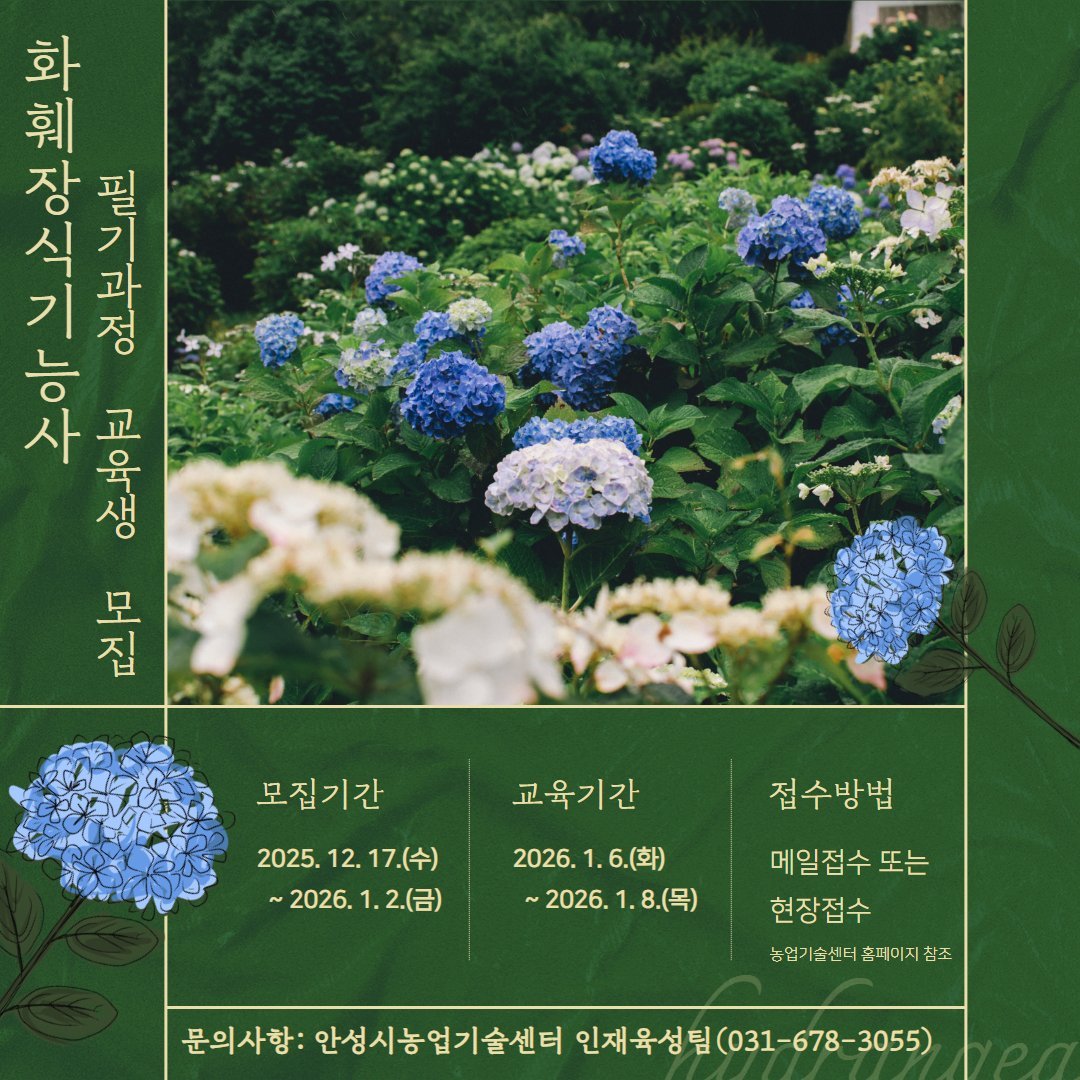 [PEDIEN] 안성시농업기술센터가 화훼장식기능사 필기 과정 교육생을 모집한다.