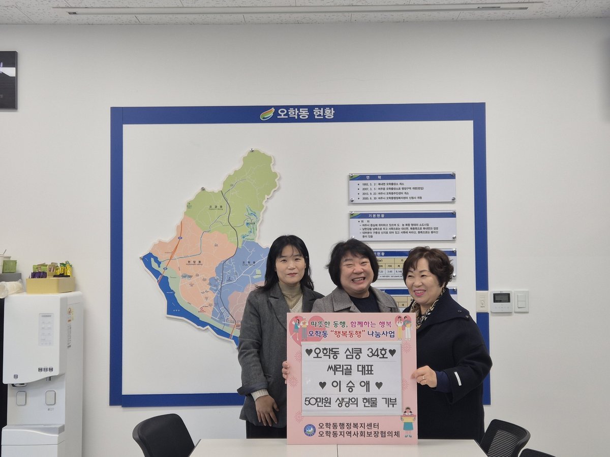 김병선 오학동장은 "이승애 위원님의 기부와 지원에 깊이 감사드리며, 이를 통해 더욱 따뜻한 지역 사회가 될 수 있도록 노력하겠다"고 밝혔다.